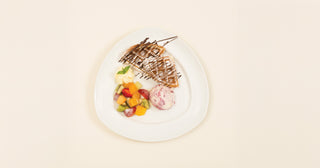 Layers of meringue, strawberries* and cream topped with Patagonia dark chocolate ice cream and chocolate drizzle. (*fruit may vary due to season)