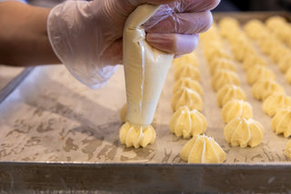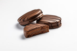 Our Argentine-inspired treats are crafted with passion and craftsmanship, making them so iconic. Our Alfajores are layered with a base of our butter cookies and filled with our house-made Dulce de Leche, then covered by the couverture chocolate waterfall. Each bite a perfect balance of crunch, creaminess, and sweetness.